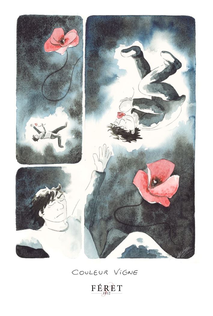 Tiré d’une planche du roman graphique Couleur Vigne, cette illustration est imprimée sur du papier coton Fine Art de la gamme d’Hahnemühle : William Turner, 310 gr . Le tirage est réalisé en encres pigmentaires Ultra Chrome (12 couleurs), garantissant une pérennité d’environ 200 ans.