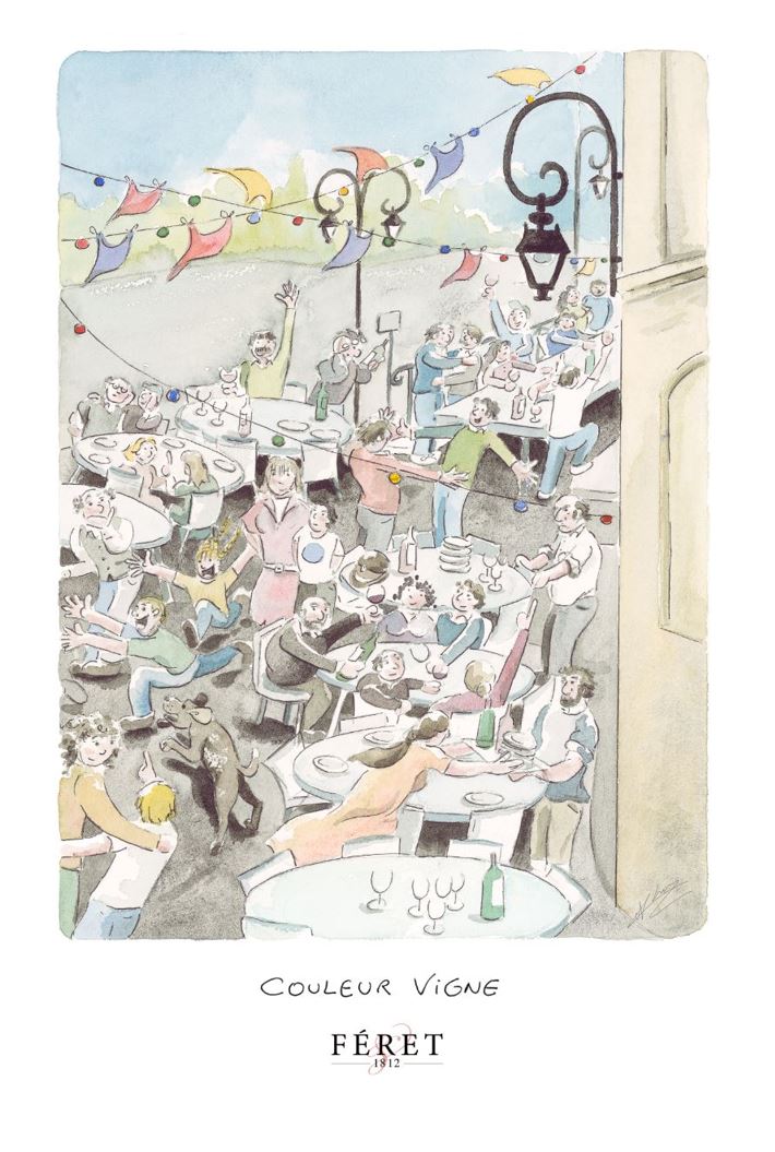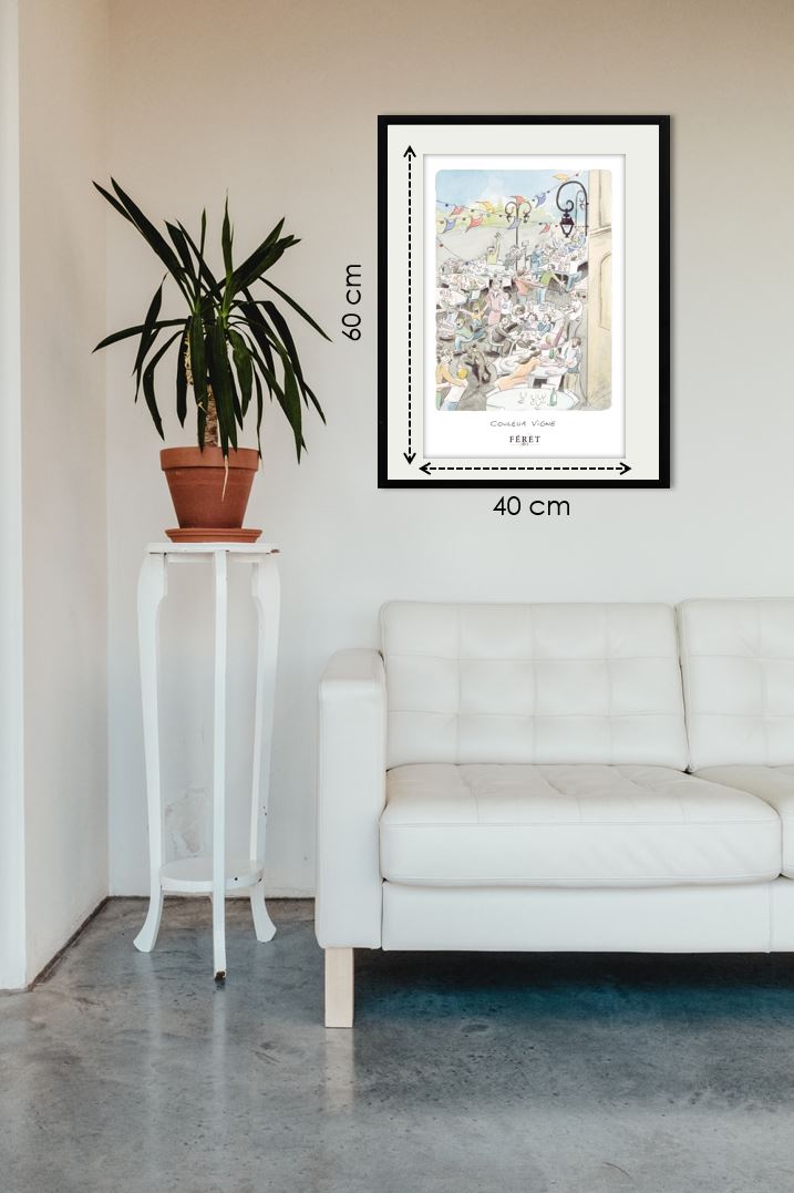 Tiré d’une planche du roman graphique Couleur Vigne, cette illustration est imprimée sur du papier coton Fine Art de la gamme d’Hahnemühle : William Turner, 310 gr . Le tirage est réalisé en encres pigmentaires Ultra Chrome (12 couleurs), garantissant une pérennité d’environ 200 ans.